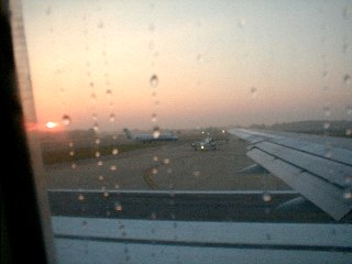 夜明け前にデトロイト飛行場に着き、搭乗した機内で朝日が昇ってくるのが見えました。