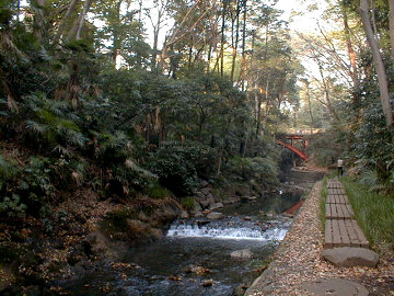 渓谷は等々力不動尊の森へと続いていました。