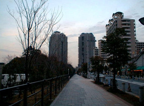 ↓ 臨海副都心線「お台場海浜公園駅」から1本北に入った道で西から東を映しています。