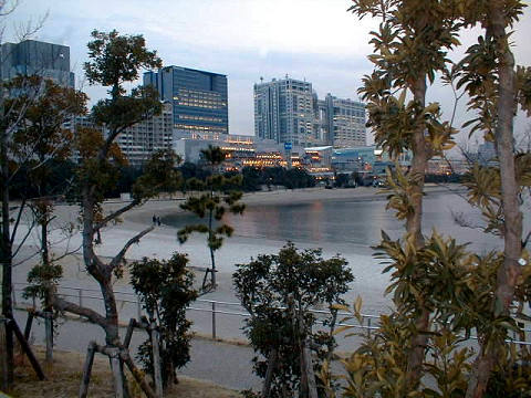 ↓ 夕やみがせまり、ロマンチックです。右のビルはフジTV