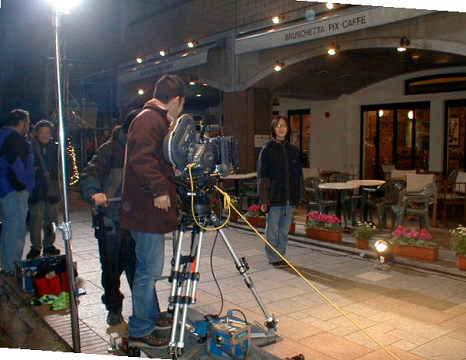 ↓ この客に扮したエキストラの人達は、マイクロバスに乗って待機して居ました。