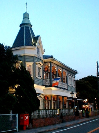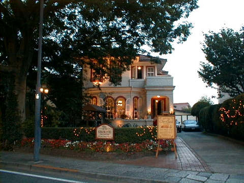 外人墓地前にあるお店。庭はビアガーデンです。
