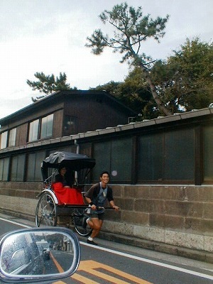 鶴岡八幡宮近くで市内観光をする人力車を見つけました。