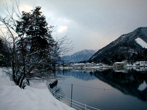↓ 飯 綱 山 Mt.Iitsuna ![]() ![]() 道の駅-白馬 Hakuba 今日は吹雪いている上に、時間がとれないので、残念ながら 喫茶店「ぷぅ」さんには寄れませんでした。 ![]() ![]() 青 木 湖 -Lake Aoki- ![]() ![]() ![]() ![]() 中 綱 湖 Lake Nakatsuna 中綱湖は、一面雪に覆われていました。 ![]() ![]() ![]() 木 崎 湖 Lake Kisaki 鏡のような湖面です。こちらに着いた時には雪もやみ、少し夕焼けになっていました。 ![]() ![]() ![]() ![]() ![]() ![]() 地上と同じ景色が“鏡のようなみずうみ”の中に写し出されています。美しい幻想的な世界でした。 夏の仁科三湖 / 秋の仁科三湖 もご覧下さい。 02/02/18 次回もお待ちしています。 3泊4日 雪の新潟県を訪ねました。 19日 PM 3:40 首都高速→東北自動車道 PM 6:45 湯沢インター出→PM 8:00 六日町 宿着 224km 20日 AM 9:30 宿発→六日町→三国川ダム→出雲崎→PM 8:00 蒲原 宿着 256km 21日 AM 9:40 宿発→新潟駅→PM 3:30 岩室 宿着 パソコンで旅と写真の整理 190km 22日 AM 10:00 宿発→JR燕三条駅→AM 11:15 北陸道 三条燕インター入→PM 11:50 関越道 越後川口インター出 →国道117号→国道18号→国道406号→国道148号→国道147号→青木湖→中綱湖→木崎湖→PM 6:15 長野道 豊科インター入→PM 8:25 八王子インター→首都高速→PM 9:30:自宅着 498km