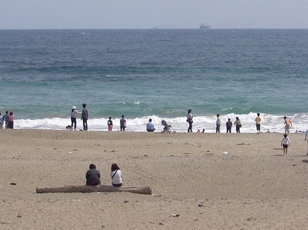 サーフィンをする人々が見えました。・・・波がなくて残念ですね。