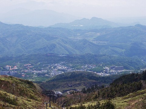 上の方に、かすかに見える町が草津の温泉街 ↓