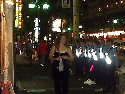 下の2枚は同じ写真で、上が加工前、下が加工後です。お巡りさんが たくさんいました。