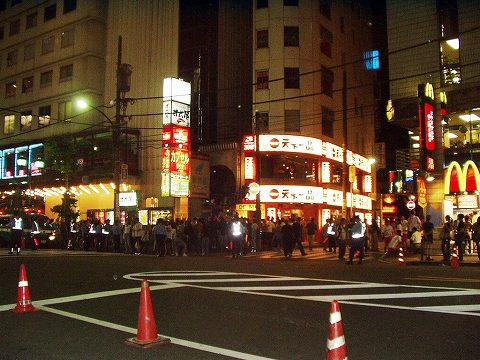 日本が勝っても負けても、事件事故が起こらぬように、大勢の警官が出動しています。