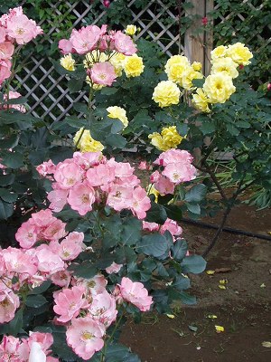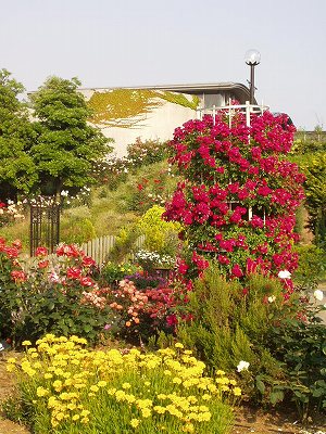 後庭は バラの花が満開です。
