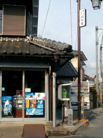 目立ちませんが、このお店の角に「一里塚跡」の石が残っています。
