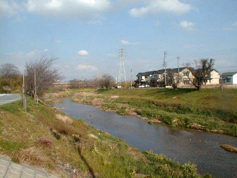 梅田川にかかる橋。向こう側に国道1号線が走っています。