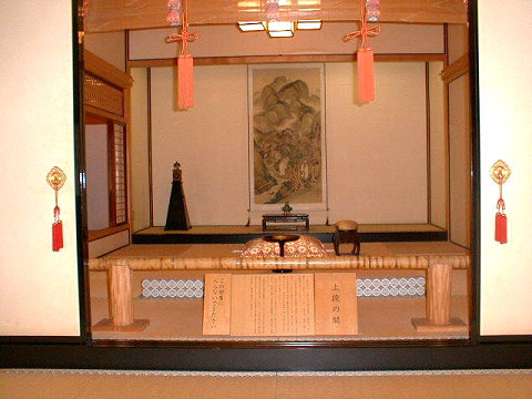 お殿様が使った部屋。座布団のある中央の2畳が、床の間より高くなっています。