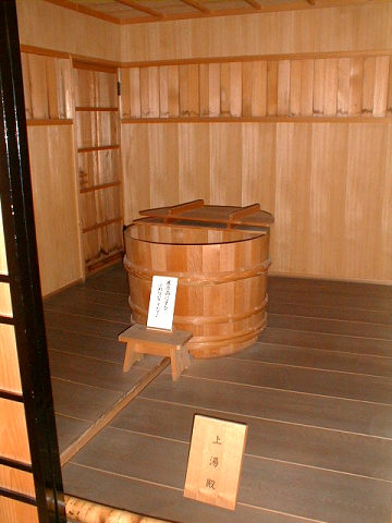 お風呂場 風呂桶(bath-tub)も持参して旅に出たそうです。