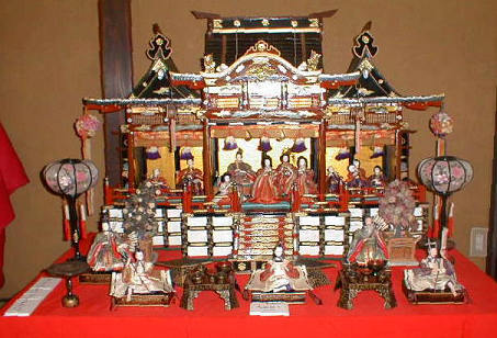 ひなまつりの歴史-資料館パンフレットより ひなまつりは、五節句の一つで上巳(じょうし)の節句といい、中国唐の時代の風習が 日本に伝わったもので、3月初めの巳の日に水辺に出て不祥を除くための禊(みそぎ)・ 祓(はらえ)を行ない、宴会を催して祝したが、後に3月3日に行われるようになった。 日本には、古代から贖物(あがもの)という人形(ひとがた)に自分の罪を託し、人形を 肌身にすりつけ、息を吹きかけ、水辺に棄て流す風習があった。この上巳の祓の人形は、 やがて流し雛ばかりでなく飾り雛も作られ「ひひな遊び」という平安時代に幼女が可愛ら しい人形で遊ぶ週間が結合して後の「ひなまつり」の雛人形となった。江戸時代になると 平安時代の宮廷の階層をまねた雛段を作り、飾り立てる「ひなまつり」となっていった。 こうした雛遊びが、3月3日雛人形を飾って祭り遊ぶ「ひなまつり」となったのは、 江戸幕府がこの節日を五節句の一つとして制定した事にも一因があり、上巳の祓の形代 (かたしろ)としての人形が、棄てられずに保存され、娘の幸福を願って飾ると言う風習が 上下にゆきわたり、幕末には京都と共に江戸でも「ひなまつり」が隆盛となり、さらに 雛市や雛売りなどの商売も起こって江戸市民の間に広がり、明治・大正へと盛んになった。 |