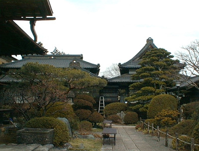The main gate of a Buddhist temple Meihakuin 本寺は日向山と号し、本尊は勝軍地蔵である。天正年間(1573〜1592)天江東岳を開山として、 勝沼城主三田氏の遺臣野口刑部浄人丞秀房を開基として創立された。 この山門は、日向和田の館(楯)の城にあったものを明白院建立の祭ここに移したと伝えられ 木造萱葺1間1戸の四脚門として市内に現存する山門の中で最も古構を遺す一例として貴重である。 (青梅市教育委員会) パネルより |