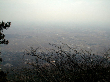 地平線が霞んで見えません。↓ 左上が、東京の方向です。