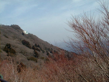 向う側は女体山のロープウエー筑波山頂駅。 東の方を向いています。