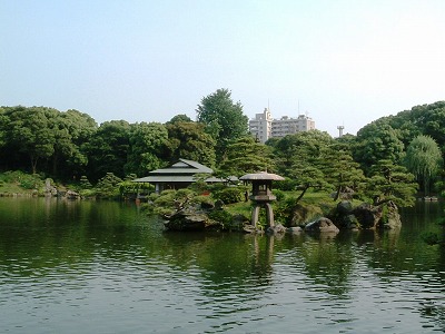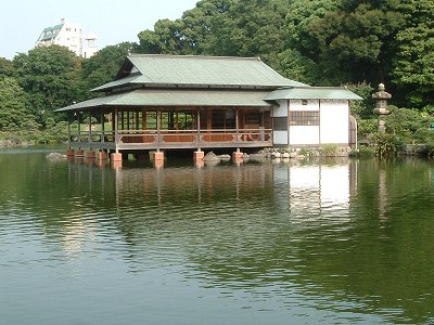 隅田川の水を引いた大泉水と涼亭↓![]() |
