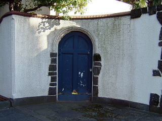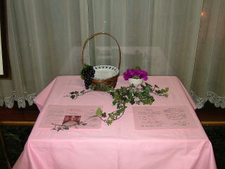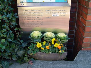 何かのメッセージでしょうか 生花ブーケが 門に飾られていました。 |