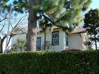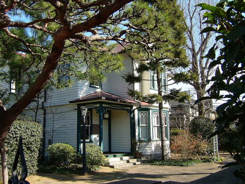 | 旧マッケーレブ邸 東京都指定有形文化財(建造物) 他に雑司が谷旧宣教師館とも呼ばれています。 今日は、第3日曜日であいにく休館日だったので、塀の外からたくさんの写真を写しました。 他にも何組かの方が、休館日と知らずに来ていました。 1907年自邸として立てたもので1941年に帰国するまでの34年間生活をした家です。 屋根は和小屋組の寄棟屋根で、南と西に切妻飾りを持ちカラーベスト・コロニアル葺き。 外壁はペンキ塗りの下見板張り。19世紀末のアメリカ郊外住宅に多く用いられたシングル様式を基調とし、 細部のデザインはカーペンターゴシック様式。 建物の内部は、1階・2階ともに3部屋がT字型に配置され3部屋ともに暖炉が組み込まれ壁の中で煙突につながっています。 -立て札より-