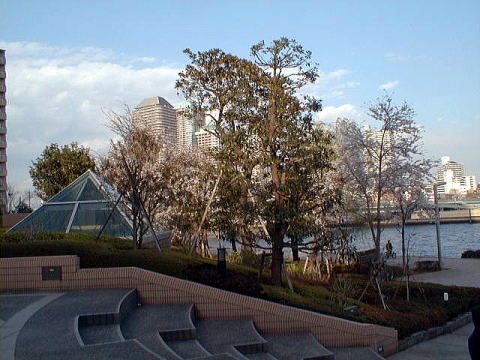 桜の木の高さと比べると、このビルは、相当な高さです。