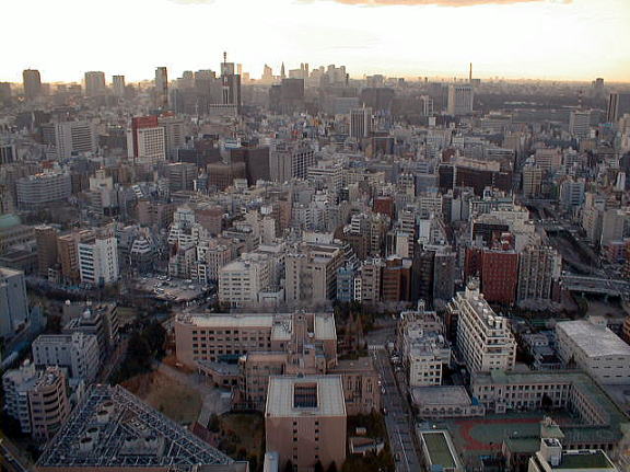 ↓ 地平線の中央にある空にとがった建物が、新宿の