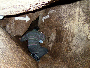 岩の脇を歩く人と比較すると 岩の大きさがわかります。 |