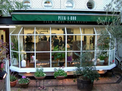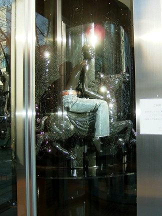 ジーンズ店になるのかしら? ウインドに向側の風景が反射してます。 オーナーの奥方は宝塚出身の女優さんとか・・・・ |