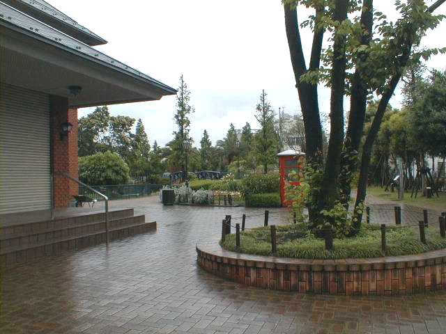 資料館は平日休館ですが、公園の中には入れます。今日はあいにくの雨空です。