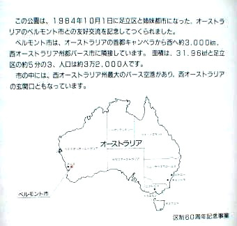 ---オーストラリア資料館--- 1F オーストラリアの日用品・工具・アボリジニ(原住民)の狩猟用具など 2F ベルモント市より寄贈された工芸品等 開館時間:AM10:00〜PM 4:30 開館日:土・日曜日・祝日 (12/28〜1/4 は休館) 入館料:無料