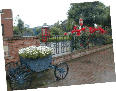 ↓ 手入れの行き届いた花壇です。羊は偽物でした。