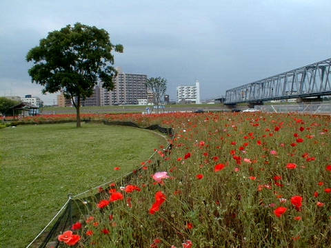 江戸川河川敷にある小岩菖蒲園。菖蒲にはちょっと時期が早かったようです。