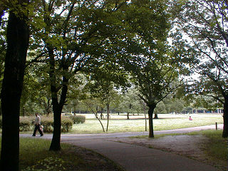 道路が走り、公園は東西に分かれてい