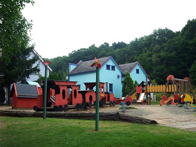 さあ、カナダ村を散策です。イギリス村ほどの建物、家並みはありません。