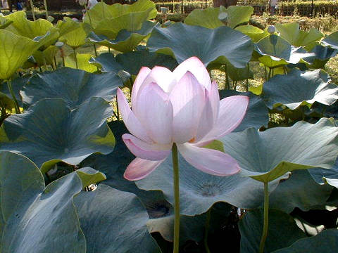 千葉公園 公園の脇をモノレールが走っています。 千葉公園で見つけた美しいはすの花