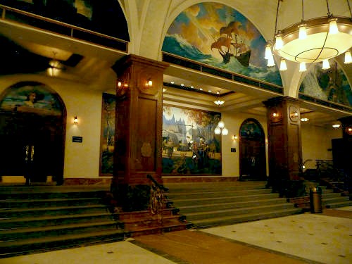 ブロードウェイ ガラス越しに中をのぞくと 今日の公演は終ったような 劇場風景でした。 |