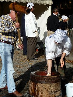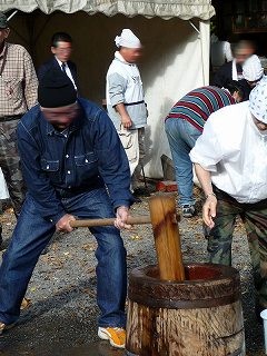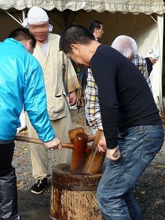 参道の中ほどの外苑休憩所のある付近で、お餅つきをしていました。