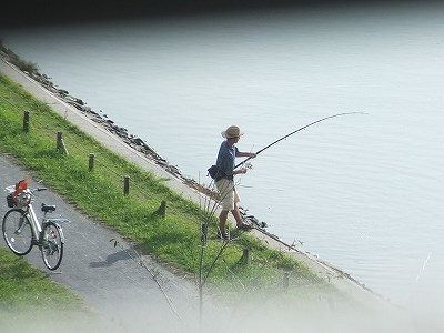 旧中川では釣り人の姿も・・・何が釣れるのかしら・・