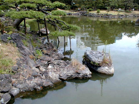 ** 泉水 ** 約9、000?の広さの泉水は、昔は海水を取り入れた潮入りの池でしたが、今は淡水の池です。 ** Pond ** The approximately 9,000-?pond used to be filled with sea water. It is a fresh-water pond now.