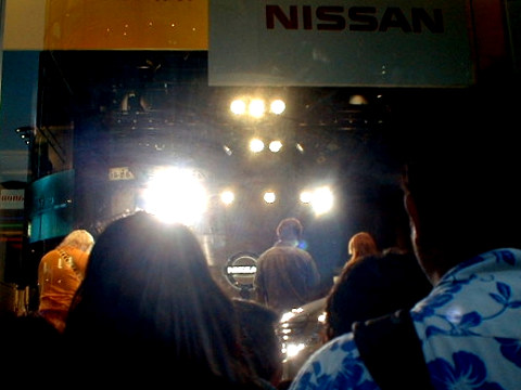 お茶を飲んでいる間に、日が傾いてきました。そろそろ帰ろう。 ↓ NISSAN ギャラリーの前では、24時間テレビの募金を呼びかけていました。 スタジオの中では、大仁田 厚さんが歌を歌っています。