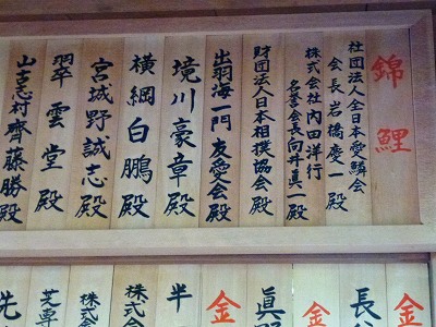 なお、正面参道・大鳥居手前左には「大関力士碑」が、建立されていますが、こちらのページに画像はありません。 |
