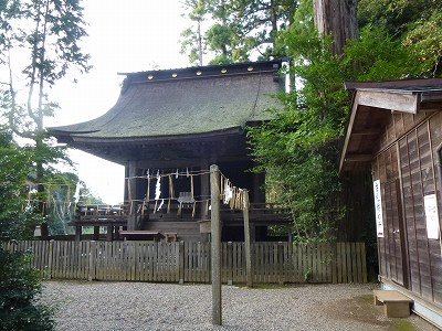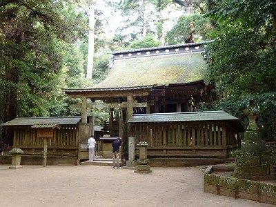 | 慶長10(1605)年、徳川家康公が奉納した本殿を元和の造営の際に引き遷したもので、需要文化財に指定されています。奥宮の前にある芭蕉の句碑の上部の穴は、耳を近けると「海の音」が聞こえるといわれています。 |