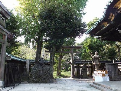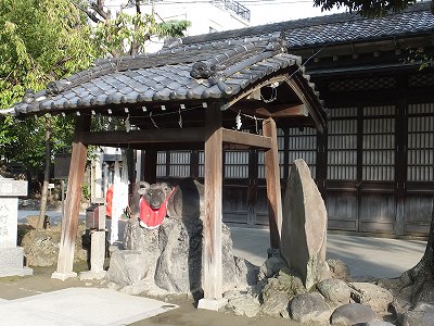 本殿の左右に、神牛が奉納されている他、建長3年(1251)年には牛鬼が社中を走り回り、落として行った牛玉を神宝としたという伝承も残る。また境内には、江戸中期から後期の国学者・加藤千蔭の碑や江戸落語を中興したといわれる立川(鳥亭)園焉馬(1743~1822)の「いそかすは濡まし物と夕立のあとよりはるる堪忍の虹」の句碑などがある。