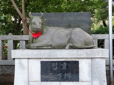 明治初期の作家、淡島寒月の句に「なで牛の石は涼しき青葉かな」と詠まれ、堀辰雄は「幼年時代」で「どこかメランコリックなまなざしをした牛が大へん好きだった」と記すように、いつも人々に愛されてきました。(墨田区教育委員会)