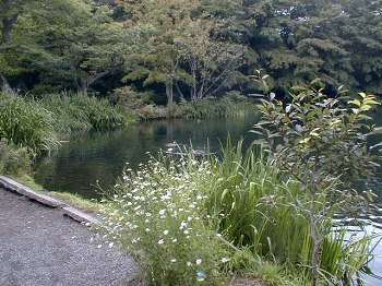 雲 場 池(Kumoba ike) 白鳥が羽を休める池と言われています。 落葉松や白樺の林に囲まれており、20分程で、池の周りをまわれます。