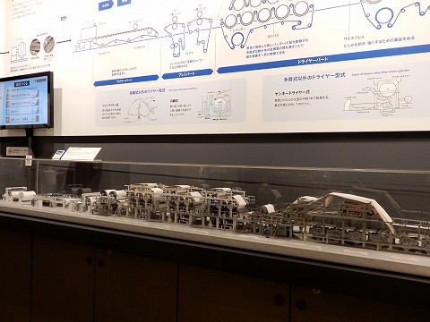1798年に、フランス人のルイ・ロベールが発明した連続的に紙を作る機械の1/2の模型です。それまでは1枚1枚手ですいていました。