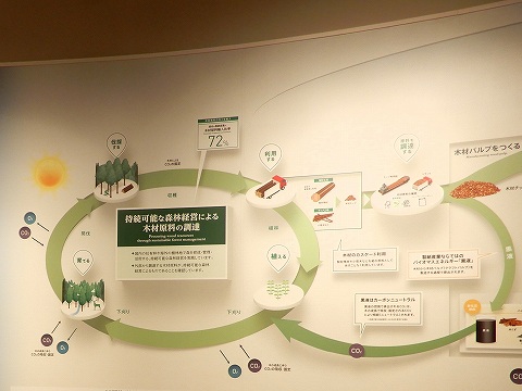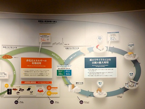 石油などを節約しています。工場から出るCO2は、植林した木が吸収(光合成)して成長します。そして、使い終わった紙は、また紙に生まれ変わるのです。