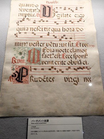 羊・ヤギ・牛などの動物の皮を加工したもので、紀元前2世紀頃より、中近東からヨーロッパにかけて利用されました。表面が滑らかでインクののりも良く、中世ヨーロッパでは美しい本が作られましたが、大変高価なため、12世紀に紙の製法が伝わると、重要な条約書など貴重なものだけに使用されました。 |