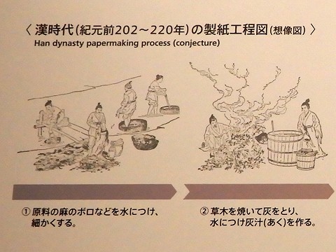 <漢時代(紀元前202~220年)の製紙工程図(想像図)