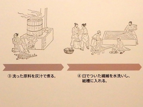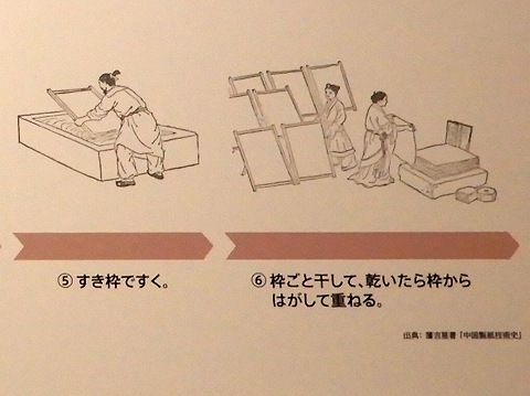 には日本に伝わったといわれます。さらにネパール・インドなどの南アジア、東南アジア諸国に広まり、751年のタラス川の戦いを機にイスラムにも伝わりました。原料や製造用具も改良され、様々な加工も行われるなど製紙技術が発展すると、紙の生産量も増え、用途も多彩になっていきました。 |